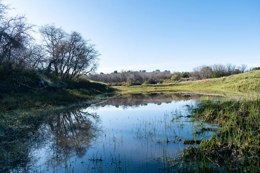 A 190ft road easement to the neighboring property is located at the bottom of the ranch on the West property line. This easement would also serve as the most efficient starting point for a new ranch road.