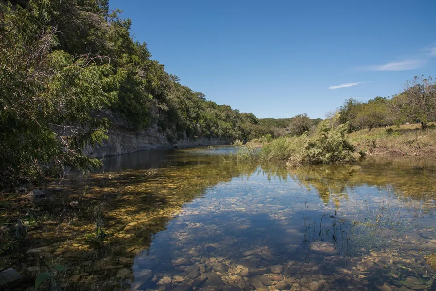Description: This area North of Camp Wood and Barksdale was first settled in the 1840s along Bullhead Creek, under noted Bullhead Mountain. The Bullhead Creek offered settlers a clear, rock bottom, ever-flowing water source to support their homestead farms. Indian Springs Ranch has awesome views, fabulous hunting, live water, camp quarters with two R.V. trailers, water and electricity, blinds and feeders. This low-fenced ranch will excite the outdoor enthusiast. Under one industrious owner for the past 36 years, the ranch has been cleared of 99% of all cedar, leaving big oaks, great brush and browse for the wildlife. The rustic camp has capacity to sleep six along with a covered outdoor lounging and BBQ area with table and benches. A pebblestone pathway leads to a modern outdoor privy. Many trails traverse the hills offering good access to all 5 blinds and feeders, and great vistas of the surrounding hills and ranches, which are 1,500 acres to the East and 1,600 acres to the West and South.