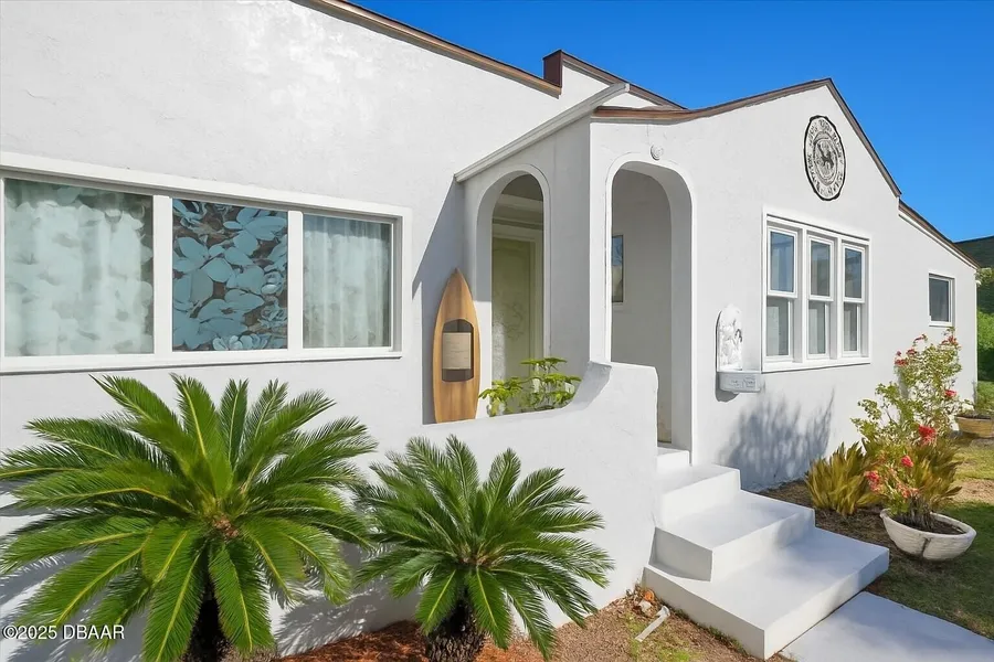 Rare beachside opportunity: this one-of-a-kind vintage-meets-modern coastal cottage, located just steps from the beach and from the river, boasts IMPRESSIVE PREMIUM UPGRADES - including a high-end kitchen imported from Germany with Siemens appliance, a new roof, new electrical, new plumbing, new AC, and a tankless water heater. These high-end improvements blend beautifully with the vintage charm of this 1950s Spanish style home with original hardwood floors, a functioning wood-burning fireplace, and high vaulted ceilings. The full OVERSIZED DOUBLE LOT adds exceptional value, offering generous space for a mother-in-law suite, an income-producing rental unit, a pool, a double garage and/or RV/boat parking. Plenty of options. And no HOA! And the best part: the home is available with OWNER FINANCING at only 4.99 percent interest, a rare chance to secure a beachside property with tons of potential. Plus, it comes fully furnished (if desired) making it easy to use as a seasonal residence, a turnkey rental, or an immediate move-in. Further special benefits include a workshop in the basement and public sewer (NO SEPTIC!). The German kitchen serves as the stylish heart of the home, showcasing premium European design and functionality. It opens directly into a spacious dining room, creating an inviting central hub for cooking, gathering, and entertaining. On the opposite side, the kitchen flows seamlessly out to the newly built open back patio the perfect transition to outdoor living, overlooking the expansive double lot and its endless possibilities. With approximately 1,780 sq ft of flexible living space, the home offers four well-proportioned bedrooms and two bathrooms, ideal for families, multi-generational living, visiting guests, or a dedicated home office. Located in a peaceful, walkable part of Ormond Beach's barrier island, this property offers the essence of coastal living: morning beach walks, evening river sunsets, local cafes, parks, and the Granada corridor just minutes away. The oversized lot offers rarely found flexibility on the beachside whether you envision a pool, guest cottage, expansion, or simply extra space for outdoor living, gardening, or secure parking for larger vehicles. With its blend of premium upgrades, vintage charm, generous land, flexible use options, and attractive owner-financing terms, this cottage stands out as one of the most unique and compelling opportunities on the beachside.