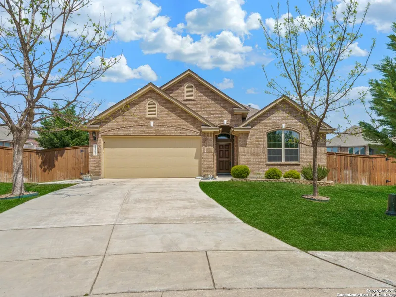 Welcome home to this charming brick residence nestled in the desirable Stillwater Ranch community of San Antonio. Designed for comfort and modern living, this beautifully maintained single-story offers a spacious open floor plan filled with natural light, high ceilings, elegant arched entryways, and stylish stone tile flooring throughout. The inviting island kitchen is perfect for both everyday living and entertaining, featuring granite countertops, 42-inch cabinetry, gas cooking, and seamless access to both covered and open-air patios - ideal for dining al fresco or relaxing outdoors. Unwind in the private owner's suite complete with a large, spa-like shower, while two additional bedrooms and a dedicated home office provide space and flexibility for today's lifestyle. An upstairs bonus room with half bath adds even more versatility - perfect for a media room, game room, or guest retreat. Step outside to enjoy an expansive backyard featuring a cozy fire pit and a spacious storage shed, ideal for a workshop, hobby space, or personalized "She Shed"/"Man Cave." This home also offers energy-efficient ** SOLAR Panels and smart home upgrades, providing comfort, convenience, and long-term savings. Experience the best of Stillwater Ranch - where community amenities, top-rated schools, and easy access to shopping, dining, and major highways come together for exceptional San Antonio living.