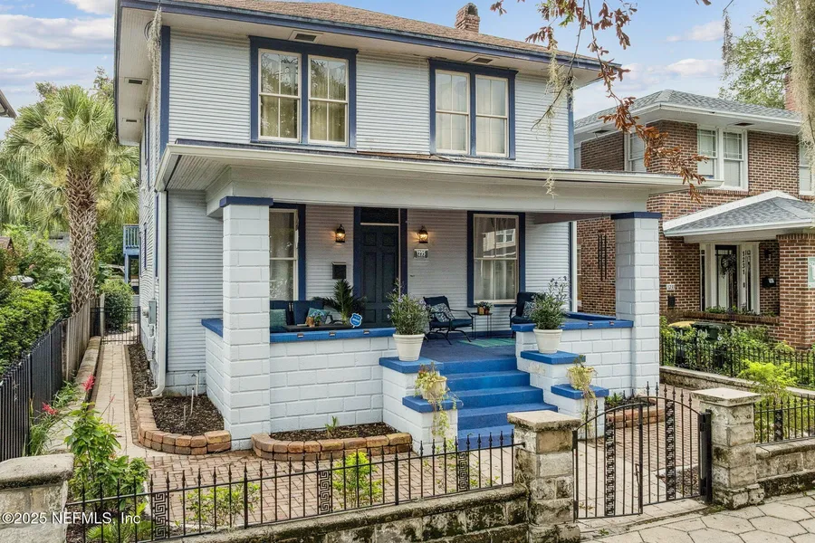 Beautifully restored Historic Springfield property offering a total of 2,884 SF: a 2,234 SF main home plus a 650 SF carriage house and a spacious two-car garage. A rarity in Springfield! Just a block from Klutho Park and minutes to Downtown, TIAA Bank Field, hospitals, San Marco, and Riverside. The main house showcases high-end trim, beadboard and coffered ceilings, hardwood floors, and an open floorplan with living, dining, breakfast nook, and sunroom leading to the back deck and gardens. The spacious owner's suite features dual walk-in closets and a spa-style bath with double shower and dual vanities. Outside, enjoy the furnished porch, backyard deck, and lush gardens. The carriage house over the garage offers ideal space for rental income, Airbnb, guests, or a private office. A perfect blend of history, flexibility, and income potential in one of Jacksonville's most vibrant neighborhoods. Fenced courtyard for privacy