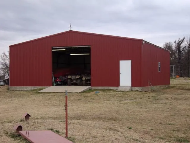 The residence on the property is constructed of steel and has approximately 1,440 sq ft of living area. This is the perfect country home and built to be around for a long, long time! It has a wonderful front porch that runs the entire length of the home. Absolutely perfect for sitting and watching our beautiful Oklahoma sunsets! The kitchen, dining and living areas were made for entertaining. The entire area is very open! The kitchen features a wonderful center island/bar area that is well suited for your bar stools. There is an abundance of cabinetry too! All of the kitchen appliances shall remain with the home. There is plenty space for a large dining table also. The central heat and air unit is nearly new and there is also radiant heat available.