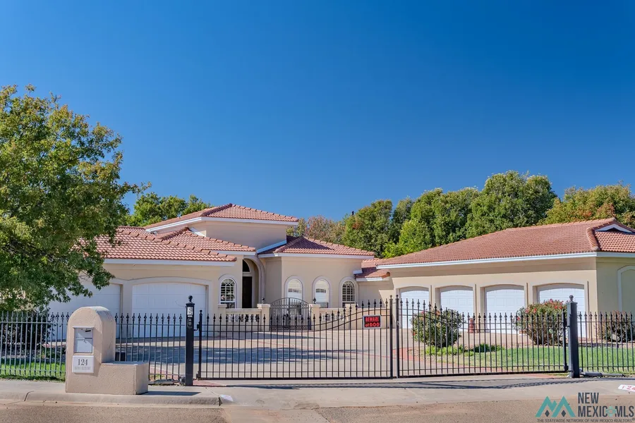 Stunning Mediterranean Masterpiece in Colonial Estates – A True One-of-a-Kind Find! This exquisite Mediterranean-style home in the prestigious Colonial Estates is a rare gem in Eastern New Mexico, offering over 4,200 sq. ft. of unparalleled living space. No expense was spared in its construction, making it an extraordinary offering for the discerning buyer. Imported porcelain-style word-work from Italy flows seamlessly through out the home, enhancing its timeless beauty. The open-concept design creates a spacious, airy atmosphere, with beautiful windows framing picturesque views of the nearby golf course. The oversized living and entertaining areas effortlessly transition to the backyard, which features two covered patios, a built-in misting system perfect for hot summer days, and a well to keep the landscaping lush and green year-round. Designed for both comfort and luxury, the home boasts a gourmet kitchen with an enormous pantry, an abundance of cabinetry, and a beautiful center island. The extra-large master suite is a true retreat, complete with a luxurious walk-in shower, a deep soaking tub, a spacious walk-in closet, and elegant granite countertops. For car enthusiasts, the property includes a 6-car garage, with four of the bays heated and plenty of room for additional storage or workspace. Throughout the home and outdoor living areas, a surround sound system has been thoughtfully integrated, providing immersive sound in every room and on the patio, ideal for both entertaining and relaxing. Every inch of this home exudes high-end finishes, from the plantation shutters to the rich granite surfaces, ensuring every detail reflects the highest standards of craftsmanship. The outdoor living space is equally impressive, with a covered patio and a serene, well-maintained yard—perfect for gatherings or peaceful relaxation. In addition, the home has recently had a new clay tile roof installed in August2024, and will be completely re-stuccoed, enhancing both its exterior beauty and structural integrity. This property is a must-see to fully appreciate its beauty, charm, and exceptional attention to detail. Whether you're entertaining guests or enjoying a quiet evening in your private oasis, this home offers the perfect setting. Don’t miss your chance to own this once-in-a-lifetime property in one of the most desirable locations in Clovis. Schedule your private showing today!