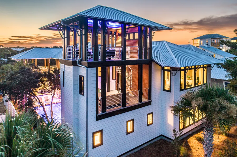 This iconic Dune Allen residence is equal parts private coastal retreat and enviable vacation destination. Offering seven bedrooms and eight baths, it blends architectural artistry with professionally designed interiors to create a modern masterpiece that balances rustic warmth with contemporary style.