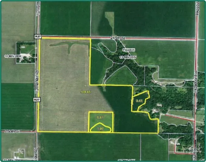 Research Parcel InformationFrom Webster City: One mile south on Tunnel Mill Rd./R27. Farm is located in SE corner of Tunnel Mill Rd. and 245th St. intersection.