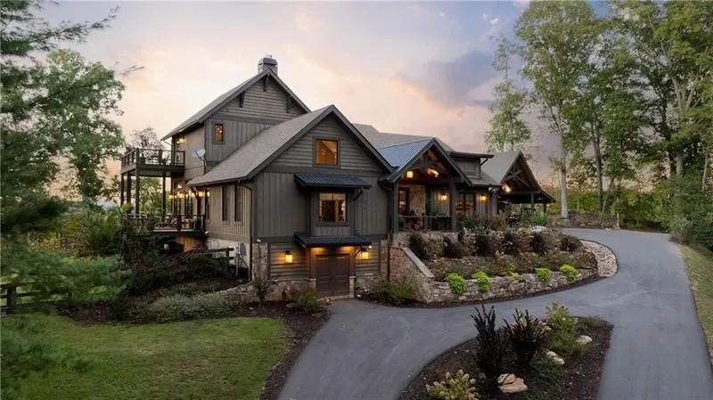 Back on the market with a completely finished designer terrace level complete with a bedroom, sitting area and full bathroom with French doors leading to the outside patio! Overlooking lush mountain views, rolling hills of apple orchards, a serene and inviting estate surrounding with established and vibrant landscaping, this exquisite custom refined mountain home exudes luxurious living! With beautifully appointed and hand-picked finishes and details, open-concept living, harmoniously crafted indoor-outdoor entertaining spaces comprised of sprawling open decks, a screened-in den, and viewing decks off the top floor; a secluded and unreal Tuscan-style setting with views of North Carolina, Tennessee, Cohutta Forest mountain ranges, and rolling apple orchard hills in the backyard. Interior is complete with a gourmet kitchen, custom cabinetry, large chef's pantry, full wet bar, large dining area with sliders opening up to an additional outdoor al fresco dining area, comfortable and luxurious living room with masonry stone fireplace, custom window treatments throughout the home and with views from every room! Each bedroom has its own luxurious ensuite with designer tile showers, large closets, and creature comfort details throughout. Primary suite on the main level has a large soaking tub creating the perfect spa-like feel. The terrace level is complete with a fourth bedroom suite, bountiful storage and glass French doors with a separate entrance! Located one mile to Downtown Blue Ridge, gated entrance with a 1/4 mile long fully-fenced driveway, estate-sized lot with room to grow, stunning double-car lodge pole carport and attached storage area, detached garden shed, 1/2 mile of manicured walking trails throughout the wooded portions of the grounds, fully fenced-in backyard for the furry friends, buried irrigation for the grounds, two wells on the property, two electric meters, low maintenance exterior, and with a full details list available! Call today to tour!