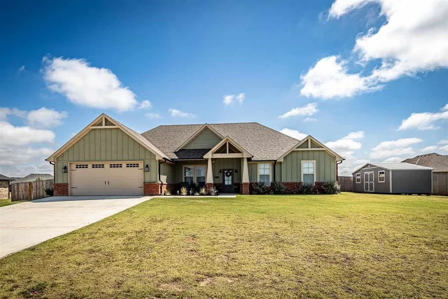 Hilltop Luxury with Unmatched Mountain and Lake Views! Experience the perfect blend of modern craftsmanship, comfort, and convenience in this stunning home nestled in Mountain View Villas. Set on over half an acre in the Elgin School District, this property offers breathtaking panoramic views and an easy commute to Medicine Park, Fort Sill, Lawton, and I-44. Step inside and fall in love with the open-concept floor plan featuring 4 spacious bedrooms, 2 bathrooms, and a 2-car garage. The chef’s kitchen is a true showpiece—complete with quartz countertops, a large island, built-in appliances, gas range, and walk-in pantry. The main living area highlights wood-look tile flooring, custom cabinetry, and a gorgeous fireplace, creating the ideal space for entertaining or relaxing. The primary suite is a serene retreat with a spa-inspired bath showcasing dual quartz vanities, a freestanding tub, a tiled walk-in shower, and an oversized walk-in closet. Outdoor living is equally impressive—enjoy a spacious covered patio with an outdoor kitchen, perfect for gatherings, and unwind on the charming front porch while watching Mt. Scott sunsets. Additional highlights include a tankless water heater, Delta faucets, R-38 attic insulation with floored attic space, 95% high-efficiency furnace, Plantation blinds with curtains, full guttering system, a 12’ x 24’ storage building, and a fully fenced backyard. This exceptional hilltop home truly has it all—views, space, upgrades, and location. Don’t miss your chance to make it yours!