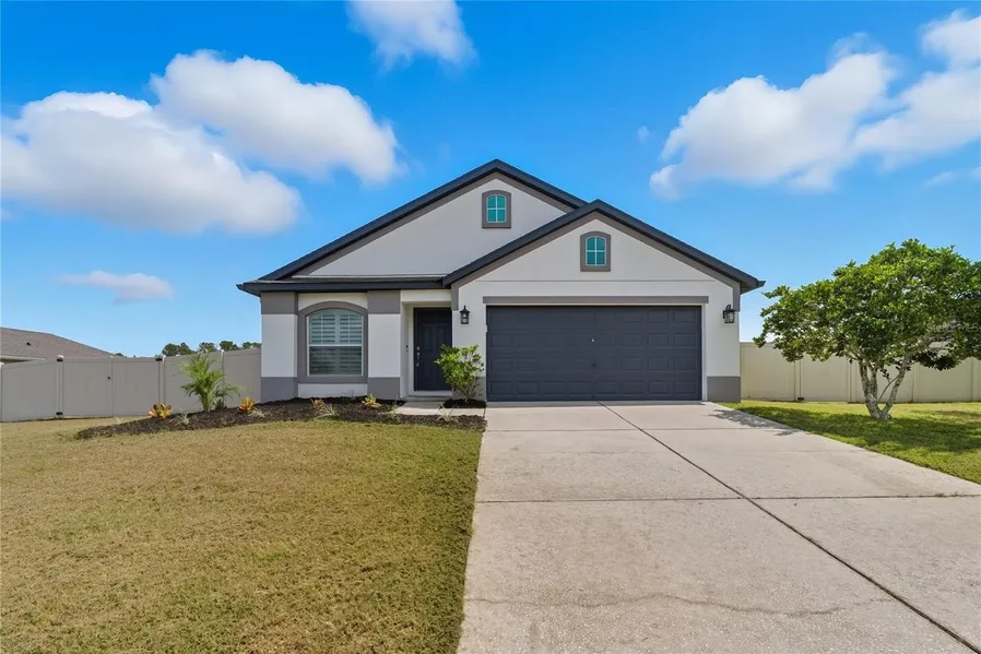 Welcome to 12410 Loopback Drive. This Inland Homes Rosewood model offers 3 bedrooms, 2 baths, and a versatile den/office—beautifully maintained by its original owner with thoughtful updates throughout. Step inside to vaulted ceilings and custom plantation shutters that create an open, inviting feel. The kitchen is the heart of the home with granite counters, a raised bar top, and a custom extended coffee bar with extra storage—a feature unique to this Rosewood model. The primary suite provides a private retreat with dual vanities, a soaking tub, and a separate shower. Two additional bedrooms plus the den/office provide flexibility for guests, work, or hobbies. The sunroom addition expands the living space, while the fully fenced backyard delivers privacy and plenty of options—with room for a pool, boat storage, and/or an outbuilding such as a shed or in-law suite (per HOA/city guidelines). Recent updates per seller include exterior paint (2023), water heater replacement with 10-year warranty (2022), septic system service with new leech field (2023), and lift station pump replacement (2024). A Tesla Level 2 charger will convey. Built with durability in mind, this home includes hurricane strapping, poured lintels, radiant attic sheathing, and an in-wall termite treatment system with a 20-year builder-applied warranty (per seller; buyer to confirm transferability). Located in the charming town of San Antonio with its local shops, dining, and community feel, this home also offers quick access to I-75, Publix, the Mirada Lagoon, and all that nearby towns like Dade City and Wesley Chapel have to offer.