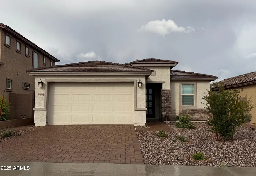 Welcome to this stunning 4 bedroom, 2 bathroom home located in Mystic at Lake Pleasant. Step inside to a chef's kitchen featuring stainless steel appliances, sleek quartz countertops and modern finishes. The spacious breakfast bar opens seamlessly to the bright living room, creating the perfect setting for entertaining or everyday living. The split primary bedroom offers privacy and comfort with its beautiful en suite showcasing a custom walk-in shower and an expansive closet. Three generously sized bedrooms provide flexibility for guests, family, or a home office. Enjoy peaceful evenings in the backyard playing putt putt golf with stunning views of Saddleback Mountain. Residents have access to the Mystic Clubhouse featuring a sparkling infinity pool, a playground and community events.