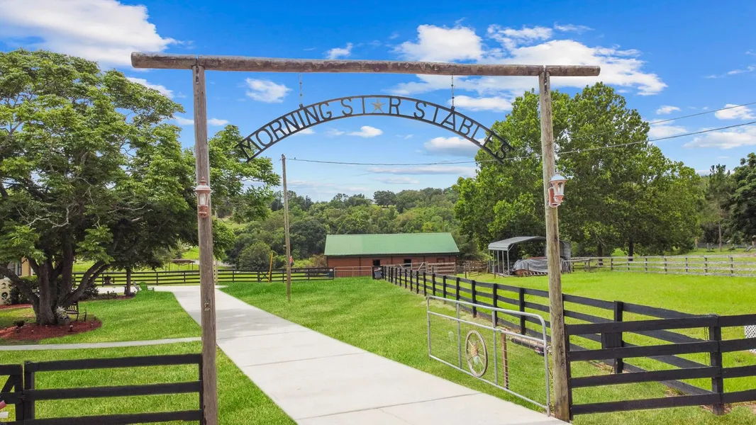 COME SEE THIS DREAMY PROPERTY NOW EVEN IF YOU THINK YOU DON'T WANT PROPERTY! YOU WILL! Welcome to Morning Star Stables, a picturesque 5 acre haven, reminiscent of the Tennessee Mountains! Clermont has long been hailed as The Gem of the Hills due to its uncharacteristically high elevation, where other parts of Florida fall flat. As the sun sets, enjoy the sounds of nature, the ubiquitous chirps, nocturnal birds song and the unfailing breeze that graces the outdoor living space nightly. The view alone will steal your heart. The grounds have fresh mulch & and array of native plants & trees including a fairy tale rain tree w/ a nostalgic wooden swing. Blooms change from yellow to pink in fall & spring, just like the Floridas skies! This 3 bedroom, 2 bath, solid block ranch style home has been cherished and meticulously maintained for the past 20 years. Components are in great condition. The roof was replaced in 2021 & extra insulation added, breaker panel in 2022, new water heater, HVAC is 15 seer & serviced bi-annually. Property sprayed every 3 months by Terminix. New gutters both house & barn! A large laundry room accessed through the 2 car garage has air conditioning & a ton of storage! The entire interior is tile & has been freshly painted inside & out. Layout offers 2 living areas a formal dining & a quaint kitchen w/ all new appliances. A perfect foundation w/ plenty of room to grow & even add a guest house! Views are gorgeous! A wall of French doors opens onto a darling covered porch with an adjacent multi level deck, giving you tons of entertaining space w/ multiple seating arrangements covered by sun shades & stylish umbrellas! There's 10 pineapple plants, cheery yellow flowering vines lining the railings & nearby jasmine sweetens the air w/ its heavenly aroma. The hot tub & paver propane firepit are positioned perfectly to unwind & relax overlooking the pond, mountainous terrain, 3 acre pasture, 2 grass paddocks and quintessential barn! The entire property is fenced & cross fenced w/ an automatic gate & a fantastic security system both indoors & out. Cameras w/battery back up, allow you to see your horses & visitors from your phone! Transferable through Hudson Security & just $40 a month! Home has a well, so NO water bill and the electric bill is always below average! Now for the EQUESTRIAN portion! The set up is superb w/ 5 stalls equip with automatic water, operable windows, horse mats, hay racks, lighting & fans in each 12x12 stall. Some of the stalls have dutch doors & special enclosed wall & ceiling fans. Theres also a tack & feed room, hay room w/ mini fridge & a place for your mower & ATV. Set up also includes a built in manure compost, electric fence, 2 shelters, concrete wash area & small horse pen w/ grass. A carport was also added to protect hay bails from the rain. Barn is tongue & groove pine with a metal roof. No annoying HOA, just fantastic neighbors when you need them! An organic hydroponic farm is across the street, forget borrowing a cup of sugar, head over for the BEST produce around! Obviously dreams like this need cultivating, so the sellers are open to discussion on their Honda Rancher ATV, Gravely mower and Kioti tractor with buckets, forks, bush hog and is of course sexy! Just minutes from local restaurants, shopping and schools including world renowned Montverde Academy! Enjoy our Chain of Lakes and the quick commute to Historic Downtown Winter Garden!
