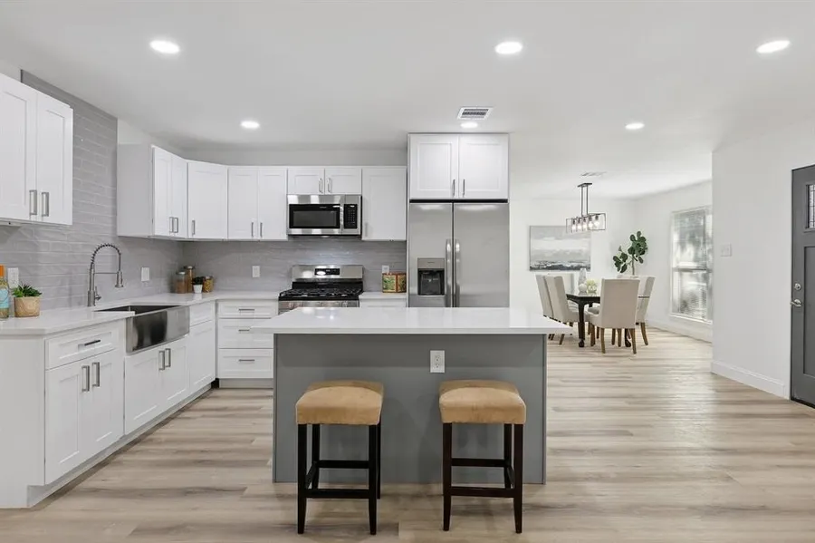 Welcome to this beautifully renovated 4-bedroom, 2.5-bath home offering 2,076 square feet of thoughtfully designed living space. From the moment you arrive, you’ll be greeted by fresh sod in the front yard, new landscaping, and colorful flower beds that create incredible curb appeal. Step through the brand-new front door into a bright and airy open-concept layout filled with natural light and modern elegance. At the heart of the home, the stunning kitchen features crisp white shaker cabinets, gleaming quartz countertops, a stylish gray tile backsplash, and a full Frigidaire stainless steel appliance package. The open layout makes it easy to cook, connect, and entertain—all in one inviting space. Just off the kitchen, the spacious living area centers around a charming fireplace and flows seamlessly into the dining area—ideal for gatherings of any size. Every detail has been thoughtfully updated for comfort and peace of mind, including a brand-new roof, luxury vinyl plank flooring throughout, a new Trane HVAC system with all-new ductwork, brand-new windows, a new electrical panel, and a newly installed sewer line that runs all the way to the city connection. Retreat to the serene primary suite, where you'll find a spa-like ensuite bathroom complete with a sleek double vanity and a luxurious walk-in shower with dual shower heads. Three additional bedrooms offer plenty of space for family, guests, or a home office. Step outside to enjoy the privacy of a newly fenced backyard—perfect for relaxing or entertaining in your own private oasis. With its fresh finishes, smart updates, and warm, welcoming style, this move-in ready home is a rare find. Don’t miss your chance to own this exceptional property—schedule your showing today!