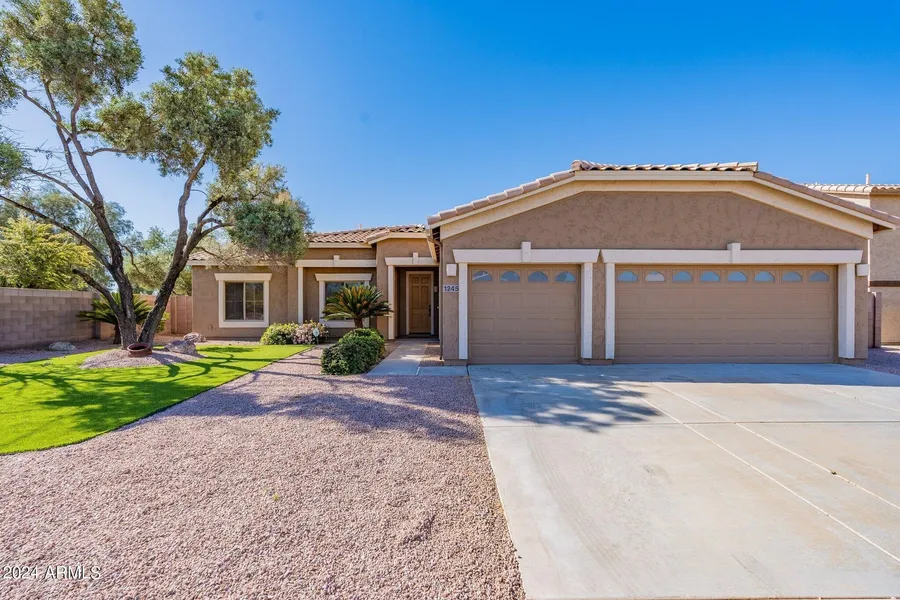 This beautifully maintained 3 bed, 2 bath home features a separate office/den and is nestled within Chandler Heights Estates. Meticulous and clean curb appeal on CORNER LOT with RV gate and 3 car garage. North/South exposure! As you enter, you are graced with ample natural light as you pass the den and formal dining space. Kitchen opens to large living room. Kitchen features two walk in pantries, large island, recessed lighting and ample cabinet space. Backyard oasis provides a private and quiet space with a large sparkling pool and extended covered patio. Split floorplan with large bedrooms! Master features separate tub and shower with private toilet and walk in closet.