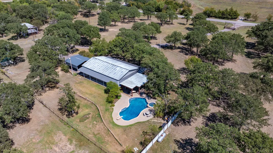 Check out this gorgeous 19.76 acre ranch thats ready for your horses, cattle, or ATVs! This multi-functional property is gate code entry, fenced & cross-fenced with cattle guards, cattle pens, loafing sheds, and an insulated shop with elec. equipment parking. This property provides pasture and abundant mighty oak trees dotted in just the right places. Enjoy sunrises with coffee from the long porches. Theres room for everyone in the open living and kitchen area of this 2,160 square foot home, complete with a cozy vaulted pine ceiling and exposed beams. The kitchen has cabinet space galore! This property even has city water plus a water well and well house in place. Entertain guests, grilling out back under the pergola and cool off in the sparkling pool! Relax those tired muscles in the spa after a fun day on the ranch. This property is conveniently located only 3 mins from Callisburg High School, and a short drive to Hwy 82 for shopping and restaurants. Come take a tour today!