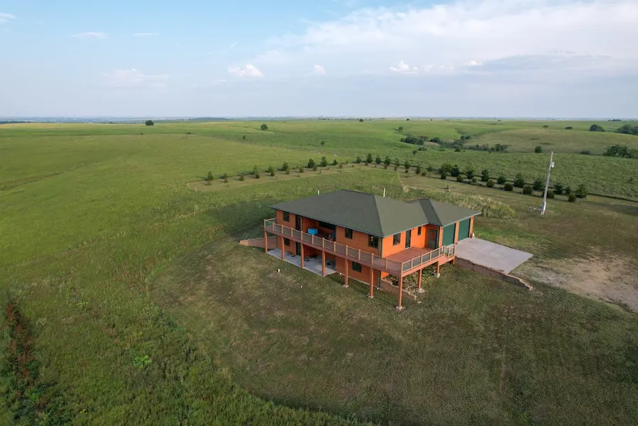 This 25.1-acre property located at 1248 Old Highway 4 in Morris County, provides a combination of usable grassland and a large residence in the scenic Flint Hills. Situated just minutes from Council Grove, the property balances rural seclusion with nearby access to services. A long gravel driveway leads from the paved road to the house, offering privacy and reliable year-round entry. The landscape is made up of native grass pasture suitable for grazing livestock or developing into equestrian facilities. Perimeter barbed-wire fencing, along with cross-fencing, is in place to allow for pasture rotation or separation of grazing areas. Two ponds provide water sources for livestock and add functional and aesthetic value to the property. The land is gently rolling with broad views typical of the Flint Hills.The home offers a total of 3,400 square feet of living space divided evenly between the main floor and the walk-out basement. The 1,700-square-foot main level includes multiple entry points and connects directly to a wrap-around deck that captures surrounding views. In the basement, two finished bedrooms share a full bathroom, while two additional large rooms remain unfinished and provide opportunities to create more living quarters, storage, or recreation space to meet individual needs. The attached two-car garage adds convenience, while geothermal heating and cooling provide efficient temperature control. Utilities include rural water service.The property is well-suited for livestock or horses, with ample space to build a barn and graze several animals. The combination of pastureland, fencing, and ponds creates a versatile environment for hobby farming, cattle, or equestrian operations. The home itself offers both finished and adaptable space, making it ready for immediate use while allowing future customization.With functional infrastructure, accessible location, and scenic views, this property supports both residential living and agricultural use in the Flint Hills. Contact the listing agent today to set up a showing!