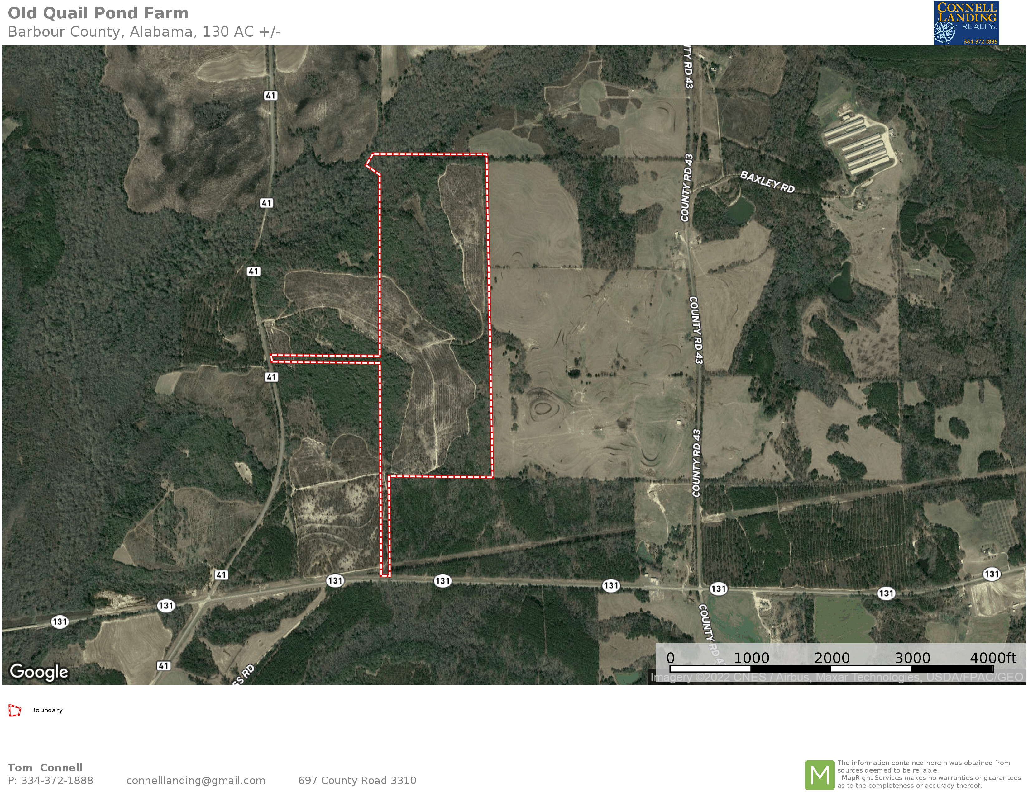 Research Parcel InformationAccess: From Blue Springs head east on AL-10 E toward County Road 41 for 1.1 miles. Turn left onto County Road 41 and go 3.4 miles. Turn right onto AL-131 N and the destination will be on the left in 0.4 miles.