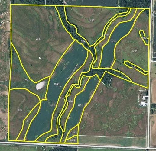 125 acres, m/l, with 105.7 crop acres and CSR of 54.2.