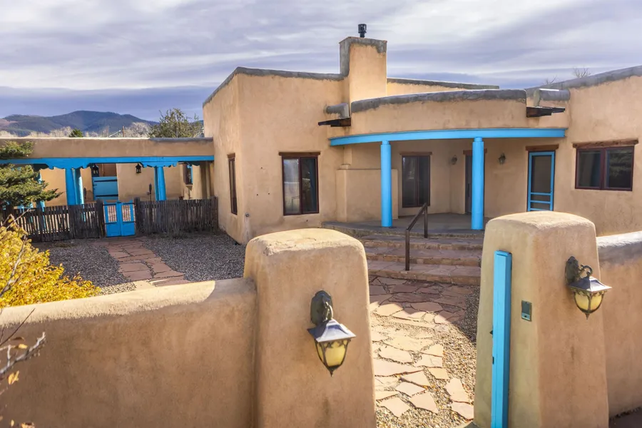 A piece of Taos History is waiting for its next chapter.... The Estate of Taos visionary Gene Sanchez, known for his contribution to Taos politics, art & architecture, offers an opportunity to shape the landscape of Taos' future. This historic estate includes an approx 3700 sq ft, 4 bed/3 bath adobe main residence that is accompanied by two charming casitas that provide stunning views of Taos Mountain. Partial basement under the main house. Designed with artistic precision and attention to detail, the home features timeless traditional Southwest architecture with modern lifestyle comforts. Ahead of his time, Sanchez designed the home to have retreat style feel that includes 3 ensuite bedrooms. The spacious master suite includes a fireplace and a private patio with sought-after mountain views, while the fourth bedroom enjoys an adjacent private bath. The home showcases rich hardwood floor, dramatic hand-crafted Viga beamed ceilings, smooth plaster walls and a formal dining room and expansive living space. Large windows throughout, flood the home with natural light, framing the iconic New Mexico sunsets. Just off the flagstone patio is a cozy 500 sq ft 1 bed/1 bath casita complete with adobe fireplace. It's an inviting space for friends, family or rental possibilities. At the back of the property of the 1.5 acre property sits the "Artist Studio". This 1 bed/1 bath 1000 sq ft casita features an authentic adobe kiva fireplace. Its peaceful and private setting is a haven in the heart of Taos. While the home and casitas have been vacant for a bit of time, this property offers so much for the buyer with vision, similar to its architects, Gene and "Jules" Sanchez. Consisting of 3 lots, this gem of a property, represents an opportunity for additional development per R-4 zoning or an upside if sold separately. Possibilities to be explored and verified with Town of Taos Planning Department. We invite you to view the many amenities that this estate has to offer in our upcoming feature presentation. PRICE REDUCTION IS AN OFFSET TO SOME DEFERRED MAINTENANCE!! BUYERS BE AWARE! Possible presence of radon gas in all of the State of New Mexico! See the EPA map