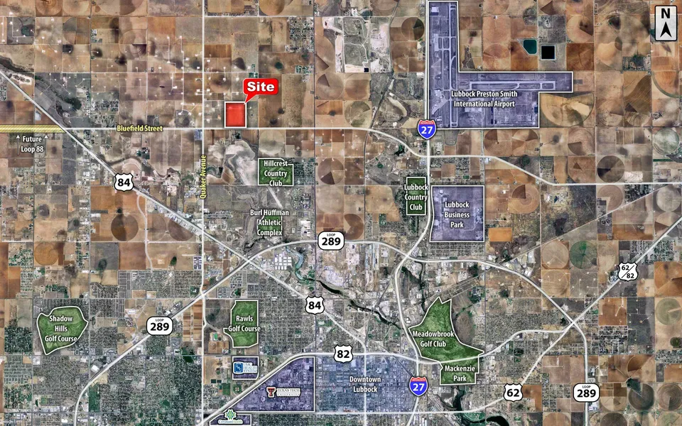 Large development tract gives a unique opportunity for the underserved north Lubbock market. The site has great accessibility and is ready for development. Texas Tech University, University Medical Center, & Covenant Health Systems, and downtown Lubbock are only a 10-12 minute drive away.