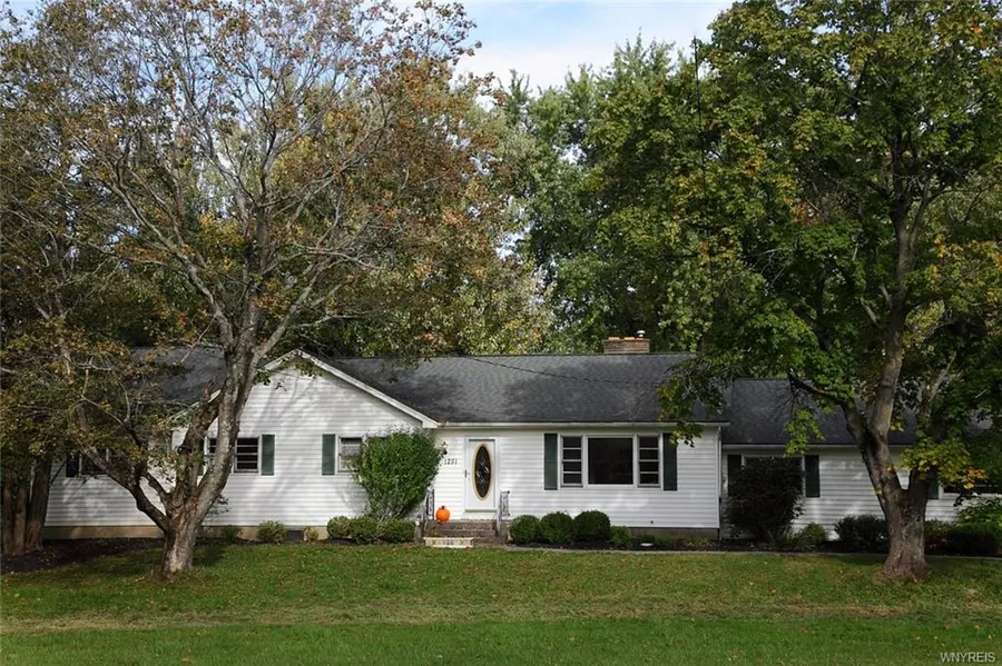 Lovely sprawling almost 2400 square foot Ranch in Iroquois school district. This large 4 bedroom (possible 5) in Elma boasts 2 wood burning fireplaces, large eat in kitchen with island cook-top workstation, vaulted family room attached and wood stove. Spacious living room and formal dining room that open to the patio for entertaining in the lush 1.5 acre backyard with fire pit and outbuildings. Continue through the home and explore the master bedroom with massive en-suite bath with over sized walk-in shower. Partially finished basement with fireplace, 2 car garage, pull down stairs to large attic, newly painted, fresh flooring/carpet, numerous built-ins and pretty curb appeal finish off this charmer. HOME WARRANTY INCLUDED!