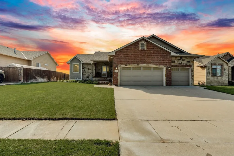 Welcome to 12517 Cherry Creek St, a spacious 4-bedroom, 3-bathroom home with a finished basement and 3-car garage in southeast Wichita. Step inside and enjoy the inviting living room featuring one of two fireplaces, perfect for cozy evenings. The large kitchen is a showstopper with granite countertops, a generous island, and plenty of space to cook and entertain. The dining area flows seamlessly, making gatherings easy. The primary suite is a true retreat with an en-suite bath, double sinks, a relaxing soaker tub, separate walk-in shower, and two closets for ample storage. Additional bedrooms offer flexibility for family, guests, or a home office. The finished basement provides even more living space with a second fireplace-ideal for a rec room, media space, or play area. Outside, the large fenced backyard is equipped with an irrigation well and sprinkler system, giving you a green lawn with ease. Whether it's barbecues, kids playing, or simply enjoying a private outdoor space, this backyard delivers. With a 3-car garage, abundant storage, and a convenient location close to schools, shopping, dining, and McConnell Air Force Base, this home has it all.
