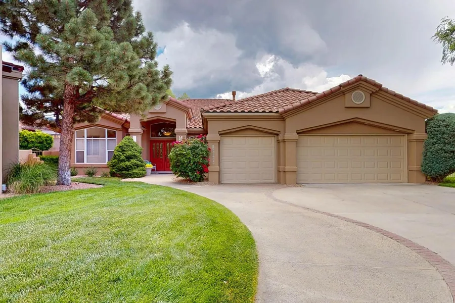 Discover this immaculate three-bedroom home with an office in the highly sought-after Primrose Pointe neighborhood. Nestled on an oversized cul-de-sac lot, this property features high ceilings and large windows that bathe the interior in natural light, creating an inviting atmosphere. Enjoy the beauty of mountain views from your covered porch, while the lush, expansive yard provides ample room for outdoor activities and future pool plans. With a well-maintained interior and a convenient Jack and Jill bathroom, this home is ideally situated near top-rated schools (La Cueva,District) ,making it a perfect choice for families seeking quality living in a coveted location. Recent update Stucco 2025.