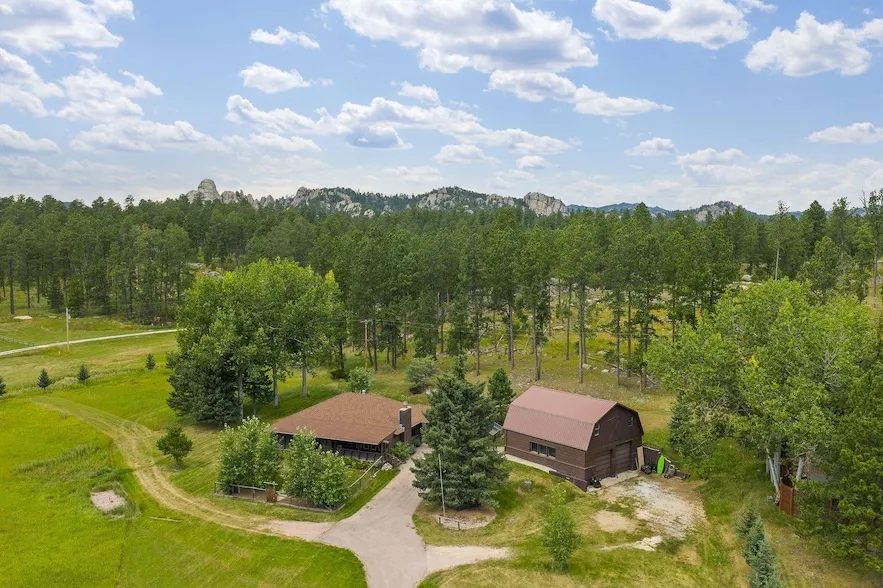 ABSOLUTE DREAM LOCATION!! Just east of Custer, SD on US Highway 16A, across from Custer State Park, Stockade Lake, Mickelson Connector Trail and bordering USFS lands. This could be your year-around-home or your get-a-way from it all vacation home. Sit on your covered front porch and enjoy the view of Stockade Lake and the historic Gordan Stockade. This home features 2 bedrooms/2 baths all on one level. Hardwood floors. Renovated kitchen and bath. Vintage look through-out. Freshly painted interior. New windows. 36X40 Barn/shop building with a loft waiting to be utilized. Barn/shop is wired for 220V service. NO COVENANTS! This property would be a great VRBO