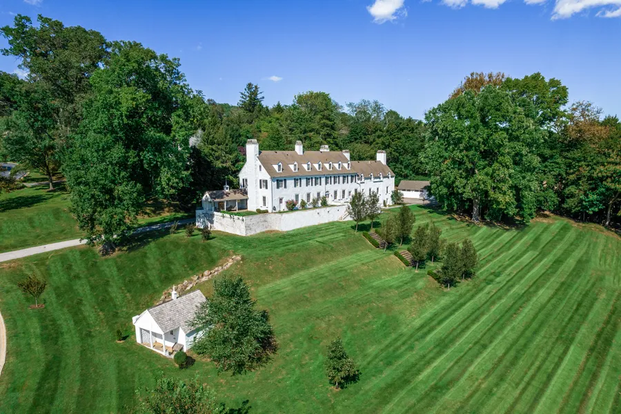 This meticulously updated Colonial Revival gem originally built in the late 18th century and expanded in 1927 by renowned architect R. Brognard Okie is set on a breathtaking 2.5-acre private lot with a terraced lawn and endless views of Gulph Creek and beyond. Formerly the manor house of Woodstock, the Van Pelt estate at Radnor, it offers over 8000 square feet of living space above grade, complete with the original features installed by Okie, plaster on stone construction, eighteen-inch-thick stone walls, solid wood shutters, root cellar, spring house, and a recently built oversized 4-car garage. With over 100 feet of linear southern exposure, the home boasts gracious sun-filled rooms that flow seamlessly into one another, perfect for entertaining, each space offering large deep-set windows, with two sets of French doors and four additional 16-lite doors leading to multiple terraces and extensive views. High ceilings, beautifully restored original random width pegged floors, incredible millwork, 11 dramatic fireplaces, solid wood interior doors, wrought iron hardware, stunning craftsmanship including Okie designed built-ins and customized expanded spaces throughout the residence hint at the grandeur of yesteryear but perfectly suit todays lifestyles. Recent improvements by the current owners include updated systems, plumbing, HVAC and electric. On the ground floor, you will find an entry suitable for welcoming guests in the style of a by-gone era, a cavernous view of the handcrafted three-story staircase, a powder room, generously sized game room, dining hall with formal lounge, and a fabulously renovated gourmet kitchen with enormous walk-in pantry and service staircase. From the formal entry, ascend the main staircase to a landing area complete with French doors to the library and four separate custom suites. The primary suite occupies the west wing and offers privacy from the remaining rooms, with a newly renovated luxuriously appointed bath and walk-in dressing room, both with custom built-ins. The east wing of the 2nd floor offers a junior suite and two additional bedrooms, each with a fireplace, ample storage and updated bath. The third floor has an additional five bedrooms, two full bathrooms and bonus laundry facility. The primary laundry room is located in the walk-out lower level which is partially finished, clean, dry and easily expandable into 2500 square feet of additional space. Enjoy this private retreat while being just minutes away from renowned schools, trains, the airport, shopping, restaurants, endless recreational facilities and more. A real one-of-a-kind treasure!