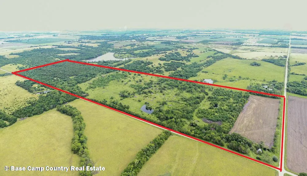 The west edge of the property features 8.6 acres of tillable Class 2 Woodson Silt Loam, and the old homesite in the NW corner. The old house is beyond repair and is being sold as is. There are couple of machine/ loafing sheds, measuring 25' x 50' and 35' x 25', that could be made useable again with minimal effort.