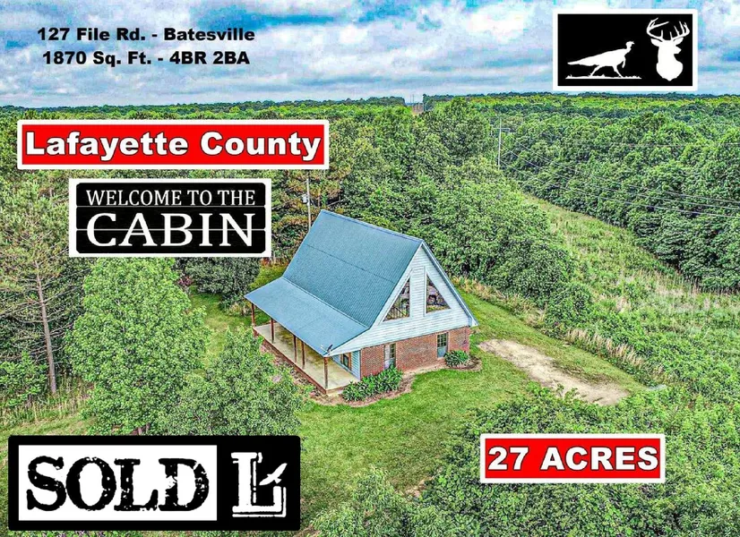 SOLD! Located between Batesville and Oxford, this super-secluded cabin sits on 27 acres & is the perfect getaway for hunting trips, ballgame weekends, or enjoying time on the water at Sardis Lake! Built in 1997, the cabin has a metal roof, large front porch, open floor plan, & a sky-high vaulted tongue & groove ceiling! The kitchen, den, laundry room, & master suite are all on the main floor. The second floor has two bedrooms & a guest bath, & the third floor has a bonus room/ third guest bedroom. There are some very unique features in the home, including a beautiful copper vent hood along with a few surprises you'll have to find in the pictures! The cabin needs some TLC and is being sold AS-IS, but the well has just been inspected & repaired, the house has recently been checked for termites, & the central HVAC unit is only 8 years old. Sit on your front porch & watch the wildlife, step outside to hunt for gobblers & bucks, or take a short drive to launch your boat at one of several ramps on beautiful Sardis Lake! The mailing address has a 38606 zip code, but it's in Lafayette County and also falls in the Oxford City School District. The entire property has been recently surveyed, so it's ready to sell! Annual Taxes - Less than $700 -- Electricity is with NEMPA, but the map shows that TVI-Fiber internet is available at this property.