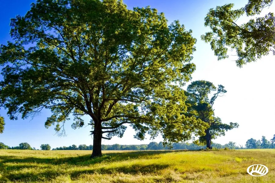 - VEGETATION: great rolling hay fields, that include numerous large oak trees to provide shade for a homesite or cattle. Strips of trees along the old cross-fence also provide shade and cover. The property could easily be cross-fenced into several different smaller pastures, each with their own watering capability