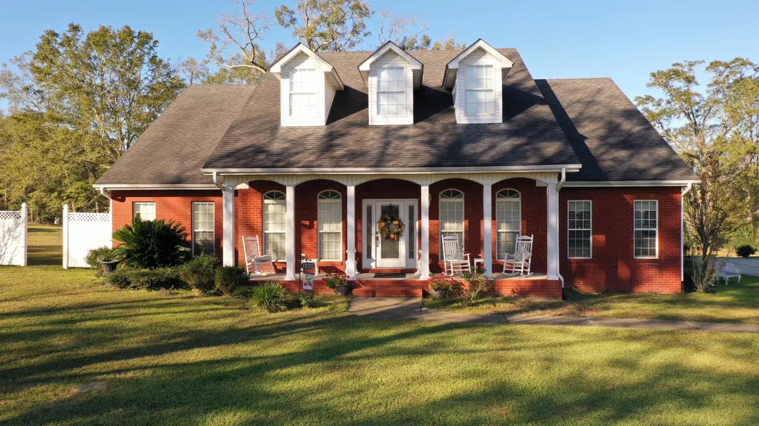 Byrneville, FL- Charming pillars and relaxing front porch hint at the friendly country feeling you'll experience inside this colonial style 2 story house nestled on 16.59 acres with an inground pool. High 10ft ceilings inside give a bright and airy feel throughout the entire interior with 2 A/C units to keep you comfortable throughout the year. This home's 2500+ sq.ft. main-floor amenities are fit to suit your life style, while the 788 sq.ft. upper floor hosts a bedroom, office space perfect for working from home, and a game room which can flex to meet your needs. An oversized foyer leads you to the central living room which features a warm gas fireplace. The breakfast bar shared with the kitchen also serves the naturally lit breakfast nook. The kitchen, updated with all new stainless-steel appliances, has easy access to the spacious formal dining room. There are 3 bedrooms on the first floor, one of which is the open master suite with ample closet space, floor-to-ceiling mirrors, and a private bath with a soothing garden tub. A set of double doors off the living room leads you out to the covered patio overlooking the beautiful acreage. Plenty of parking is available from the attached 3 car garage and detached 2 car garage that is 31 x 41', which the inground pool sits at the back of this building. Seller does have a yard building for all those yard toys.. Stunning home in a beautiful area loaded with amenities! Call now for your private tour!