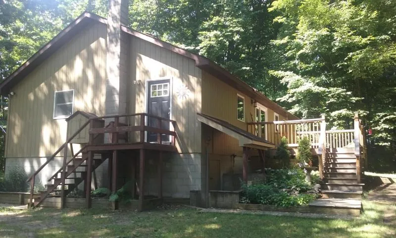 Peaceful and quiet 10 acre setting with large spring fed pond surrounded by hardwoods and wildlife. Solidly built ranch overlooks pond. 3 bedroom 2 bath home includes a wood burning stove in the living area, plus a forced air furnace for heat. Nice big 2+ car detached garage with generous overhangs for boat or RV storage and 220 electric service. State land adjacent to the North and East. Minutes to Crystal Mountain Golf and Ski Resort!