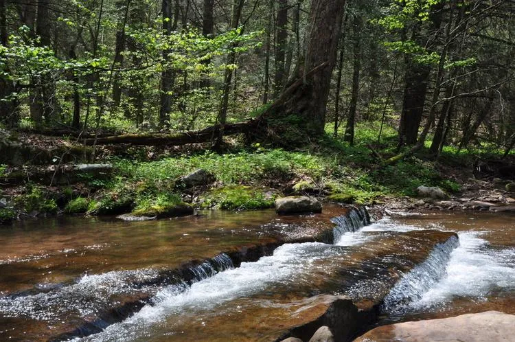 Pence Springs Forest is blessed with a year-round water source. Hungard Creek is a beautiful blue line, clear water stream, that flows for 3 miles through the heart of the property. Six other blue line feeder streams drain from the side hollows to the valley floor into Hungard Creek. There are also over 100 ephemeral streams that flow during rain events and snow melt.