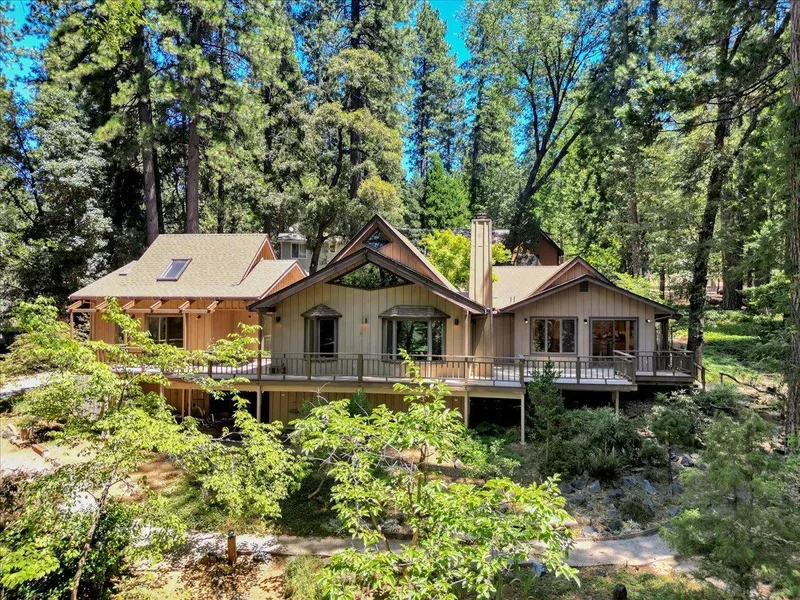 Lovely custom craftsman inspired home on one large landscaped acre with many mature plantings, walkways etc. This well loved home has High Open Beamed Wood Ceilings, Skylights, abundance of Anderson Windows and Sliders. Loads of natural Light throughout. Roof is 5 years new. All the rooms are spacious with an Open concept. Huge Living room with bay windows. All day to day living on the main floor. with exception of one bed and loft above. The office/den could easily be turned into another bedroom as the Septic is for 3 bedrooms, or use your imagination. This well crafted home was state of the art in its day. The Enormous Kitchen with massive counter space, 2 sinks and an Island opens to an adjacent eating area. There is a huge walk in pantry, laundry area and extra small refrigerator built in. This home is perfect for gatherings with easy flow entertaining into the Living Room and exterior Deck. As you drive up the driveway there is room to park a trailer or boat at the bottom. Priced to sell, with Huge upside potential in quiet and desirable location.