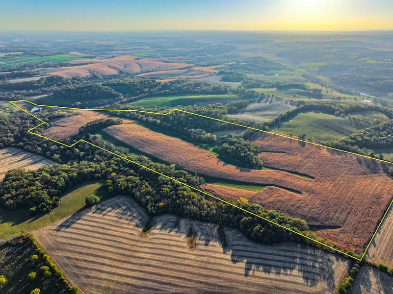This versatile 128-acre farm, set amidst the picturesque rolling hills of the Driftless Region, features a blend of tillable fields, timber and open areas. Located west of Loran, this farm gains access off of Gerke Road, where you have a lane that travels between the timber and tillable ground, leading to the buildings nestled into the interior of the farm. Traveling past the barns, you have some open fallow fields on the eastern boundary that are used as bedding for wildlife. Advancing north into the farm, you have approximately 90 acres of tillable ground bordered by timber on both sides. This property not only offers potential for farming income but is also a haven for deer and turkey hunting. With ample stands of timber, there are numerous hunting opportunities and observed bedding areas. Towards the northern section, there’s a 2.5-acre field perfect for establishing a large food plot, ideally situated near the timber. The interior of this property has a nice mature stand of timber that would allow for hunting opportunities. This farm is ideal for someone looking to expand their farming operation or looking for a hunting property with income generation.