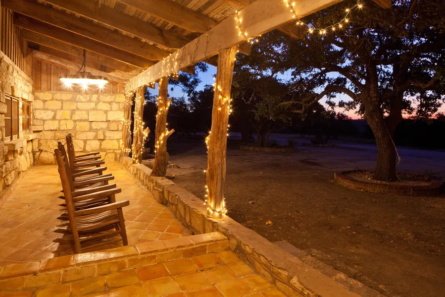 HEADQUARTERS The Lodge is a true showplace with a 40-foot ceiling and thick walls of native cut stone with faded red planking from a Hill Country barn. There is a massive stone fireplace, turn-of-the- century wood bar and chandeliers fabricated from wagon wheels. A spiral staircase leads to a loft. The heart of the ranch, the Chuckwagon, is comprised of the restaurant, banquet room, offices, three half baths and a commercial kitchen. Available lodging for guests includes four old log and frame cabins with historical intricacies such as Kerr Countys first schoolhouse, an 1850s stagecoach stop and the first post office from Boerne, along with separate rooms and suites throughout the headquarters. The Amphitheater is one of the newer additions to the Y.O.s list of available entertaining venues. Able to accommodate many guests, the Amphitheater is the perfect location for concerts, conventions, and outdoor gatherings.