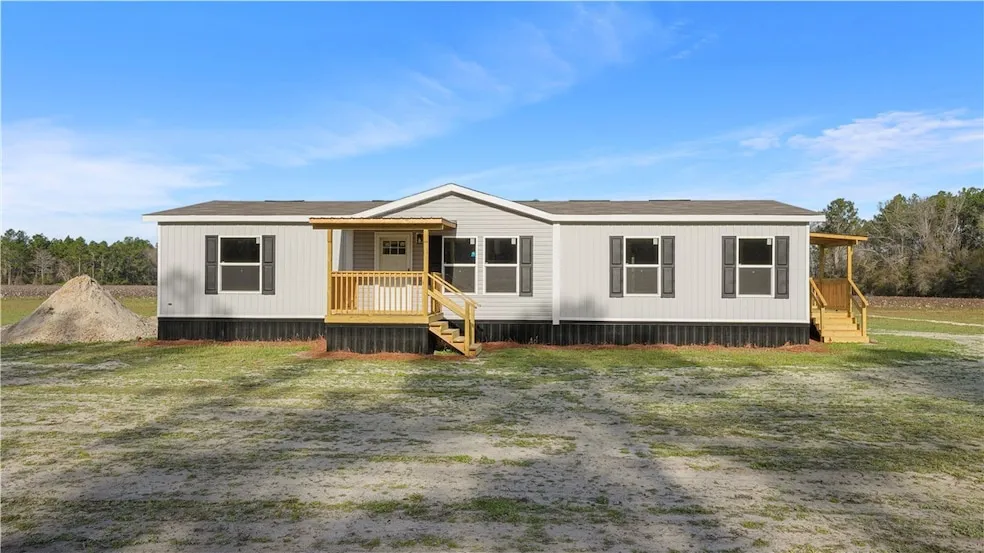 Check out this beautiful new 3-bedroom, 2-bath Clayton mobile home offering 1,568 heated square feet of comfortable living space! Nestled on a 1 acre lot in the Odum School District. The home boasts an open floor plan with a spacious living area, modern kitchen, and split bedroom layout for added privacy. Relax outdoors on the covered front and back porches, or take advantage of the covered carport parking. Qualifying for FHA, VA, and Conventional financing. Don t miss this opportunity! Call today to schedule your private showing and make this new home yours! Pictures are of previous homes and vary in color. Outside pictures will be updated upon completion.