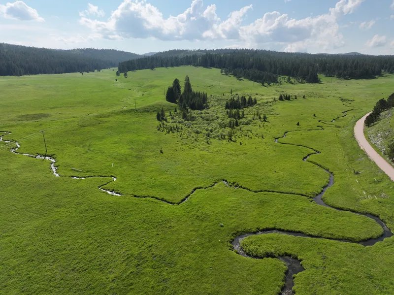 Property is bordered by North Rochford Rd and the Mickelson Trail. Two live-water creeks. Open meadows, surrounded by forest with gently sloping ridges.