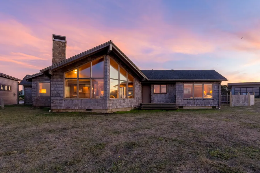 Step into your dream coastal home, where breathtaking views and luxurious comfort await. This exquisite 2174 square foot property with 3 BDR/2 BA features expansive floor-to-ceiling windows that frame the stunning coastline, allowing natural light to flood the spacious living areas and the primary bedroom. The cozy interior boasts a natural stone fireplace and rich wood paneling, and the kitchen flows effortlessly into the dining and living area, ideal for gatherings and daily living, a warm and inviting atmosphere perfect for both relaxing and entertaining. Indulge in your very own private sauna, offering an escape after a day at the beach or on the golf course. The home also includes a charming loft space, ideal for kids. Enjoy the convenience and privacy of a fenced-in side yard, perfect for outdoor activities, and a safe play area for pets and children. And wake up to the sound of waves and enjoy your morning coffee with a panoramic view of Bandon’s south jetty and Coquille River Lighthouse. Whether you’re hosting guests or seeking a peaceful retreat of your own, this home offers the perfect blend of comfort and elegance. Plus, Bandon Dunes Gold Resort is only a few miles north, and Old Town Bandon is just minutes away. Don’t miss out on this rare opportunity to own a piece of paradise.