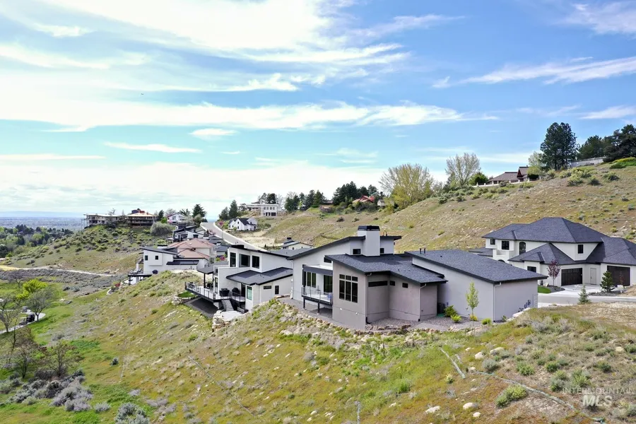 Views for miles! Gaze out at the Owyhee Mountains, the foothills, and a striking skyline from this gorgeous single-level home perched above Crane Creek Golf Course (private membership) where this location offers a rare chance to be moments from downtown, and steps from the foothills trail system. This almost-new Conner Construction build delivers flexibility for executives, downsizers, or as a lock-and-leave second home. A spacious center island anchors the open layout, with vaulted ceilings stretching across the living areas. Savor double ovens, a gas cooktop, custom cabinets, and a versatile pantry roomy enough for storage, prep, and hiding appliances. A cozy office and two secondary bedrooms provide options for guests or flexible use, while the primary suite brings spa vibes with a curbless shower and a California Closet system, & can be customized. You’ll love the separate laundry room, extra-wide 3'x8' interior doors, and 3-car garage—all in a modern package. A gas backup generator offers peace of mind.