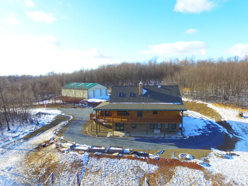 This property features 90 acres woodland with a beautiful log home built in 2012. Home has many features including 1 bedroom (could easily be converted to 3-4 bedrooms.) eat-in kitchen with granite countertops, dining room, & large living room. Full finished walkout basement with superior walls. Home is approx. 3,000 total square feet. A large porch most of the way around the home. Backup generator in case the electric goes out. A 40x60 garage/pole barn with concrete floor & electric. Built in 2006 & Has 3 bays for parking or storage. Only minutes from Raystown lake, approx. 40 minutes from State College. Awesome mountain views! Private & secluded! A wonderful opportunity for a buyer!