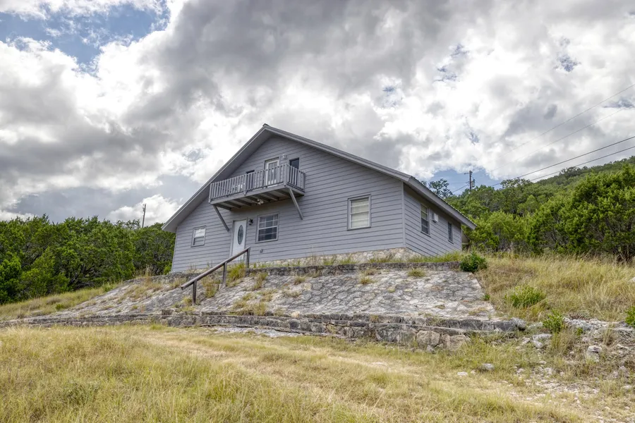 Ideally situated right above the natural pool in Roaring Springs subdivision, this 10.65 acres with a home is the perfect getaway. The cabin is 1298 square feet, and features one bedroom and one bath downstairs, and a spacious loft with balcony. The home sits at the front of the property, and the land behind has great possibilities for future development and many beautiful building sites. Roaring Springs is located seven miles from Camp Wood on Texas Hwy 337 towards Leakey. It is a gated subdivision with a large community park and a naturally flowing spring fed creek. Peaceful, secluded, and picturesque ... call today for an exclusive showing.