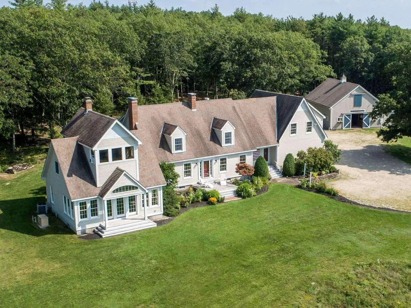 SALE PENDING - Ultimately private, this sprawling 4,800 s/f cape is sited to take in incredible views including Crotched Mountain Ski Resort in neighboring Bennington. From its unique Crown Point kitchen with abundant storage and granite and quartz countertops to the wonderful observatory in a more recent addition, this home is beyond ordinary. Creature comforts include fabulous entertainment space in the fireplaced great room complete with an adjacent service kitchen, central AC, fireplaced living room, four-season sunroom, and an observatory loft to inhale the views, hone your writing skills, set up your easel or just or enjoy the tranquility of the property's 30 acres. And a whole house standby generator will keep things humming along in the event of a storm. There several pretty outdoor spaces to enjoy and lovely sprinklered gardens to admire. A relaxing open deck faces the views, and acres of woodlands are waiting to be explored. For the equestrian, the custom horse barn offers a heated tack room, H&C water, wash stall and a well-planned overall design to make horse keeping easy and efficient so you can spend more time in the saddle. No horses? Convert the space for another use as the barn sits on a full concrete foundation. It's life the way it should be in the charming and historic town of Francestown in southern NH. Golf & ski locally, Manchester Boston Regional Airport-45 minutes, enjoy dining in town and in surrounding communities. Showings start Sat. 8-28-21 by appointment.