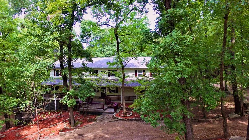 What an opportunity to own a custom built mega home on 40 +/- acres amongst a beautiful canopy of mature hardwoods. This home boasts an amazing 4,963 +/- square feet with a full wrap around porch, just waiting for your family to enjoy. Upon entering the main level you are greeted by a 22 +/- foot tall cathedral ceiling and a stunning stone fireplace that is almost sure to take your breath away. To make this home a little more impressive, everything you need is on the main level, including a large dining room with a server's window, a massive kitchen with lots of storage, a large laundry room, a mud room, a study with a fireplace, an office, 2.5 baths, and a garage. Last but not least is the master bedroom, which includes a third fireplace, master bath, and a private entry to one of the many porches. Just off of the living room is a beautiful stairway that leads up to the balcony that provides access to 8 bedrooms, 2 studies, 2 bathrooms with multiple showers/tubs, and a large game/bonus room. Just when you thought there couldn't be any more, lets head down to the basement where you'll find a safe room, entertainment room, and a second garage with a wood-burning stove designed to help heat the home. The home is supported by rural water, central HVAC, and an electric furnace and water heater. The property has been surveyed into three tracts with an amazing amount of mature timber, wet weather waterfall, and trail system for your ATVs. Well we're not done yet, located just above the home is 30'x40' workshop equipped with power, as well as a 220 amp plug for heavier equipment. If observing wildlife is your passion, there's sure to be no shortage of that, as deer, bear, turkey, and various other species call this property home. Plus, this paradise property is located only 20 minutes from Fayetteville and Devil's Den State Park. Whether you're looking for a private paradise, an investment property to create a bed and breakfast, or an event property, it's sure to have plenty of space. For your personal tour contact Jon Massie with Midwest Land Group, LLC at (785) 313-0981.