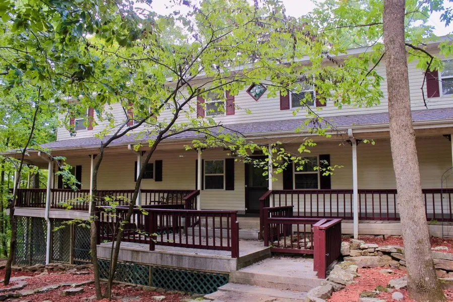 What an opportunity to own a custom built mega home on 21 +/- acres amongst a beautiful canopy of mature hardwoods. This home boasts an amazing 4,963 +/- square feet with a full wrap around porch, just waiting for your family to enjoy. Upon entering the main level you are greeted by a 22 +/- foot tall cathedral ceiling and a stunning stone fireplace that is almost sure to take your breath away. To make this home a little more impressive, everything you need is on the main level, including a large dining room with a server’s window, a massive kitchen with lots of storage, a large laundry room, a mud room, a study with a fireplace, an office, 2.5 baths, and a garage. Last but not least is the master bedroom, which includes a third fireplace, master bath, and a private entry to one of the many porches. Just off of the living room is a beautiful stairway that leads up to the balcony that provides access to 8 bedrooms, 2 studies, 2 bathrooms with multiple showers/tubs, and a large game/bonus room. Just when you thought there couldn’t be any more, lets head down to the basement where you’ll find a safe room, entertainment room, and a second garage with a wood-burning stove designed to help heat the home. The home is supported by rural water, central HVAC, and an electric furnace and water heater. The property has been surveyed into two tracts with an amazing amount of mature timber, wet weather waterfall, and trail system for your ATVs. If observing wildlife is your passion, there’s sure to be no shortage of that, as deer, bear, turkey, and various other species call this property home. Plus, this paradise property is located only 20 minutes from Fayetteville and Devil’s Den State Park. Whether you’re looking for a private paradise, an investment property to create a bed and breakfast, or an event property, it’s sure to have plenty of space. For your personal tour contact Jon Massie with Midwest Land Group, LLC at (785) 313-0981.