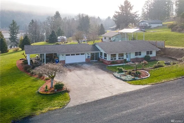 Perfect spot in a picture perfect setting is this nicely updated 1-story home with views of Riffe Lake & Swofford Pond. New laminate flooring, updated kitchen with matching stainless appliances. Mini-split heat/cooling and solar power generating system which almost eliminates power bills. There is a heated/cooled workout area & baths are accented in tile & shiplap. Nicely landscaped yard with large patio featuring hot tub off primary suite. Heated garage with attached 2-bay carport and storage. Almost 0.75-acre tract with fenced area and room for gardens & enjoy the Gazebo area. Park your RV or boat in the RV carport, work on all your projects in the 24'/24' shop w/220. Community access to lake and common area all in a peaceful community.
