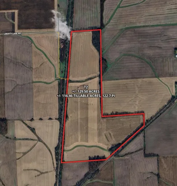 Tract 2: +/- 129.5 acres in total, FSA 116.46 tillable acres, 122.7 PI.