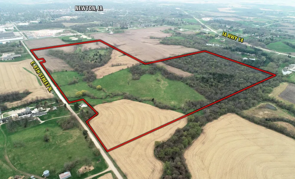 Tract 4 consists of 129.87 acres m/l with 43.5 FSA tillable acres and a CSR2 of 63.5. The balance of the property includes open meadows, Benjamin Creek winding throughout, and high quality timber ground with a variety of mature hardwood tree types. This is a rare opportunity to own a diverse recreational property or potential for an acreage setting within minutes of the city of Newton. Abundant wildlife maintained on this property with food, cover, and water all working to promote habitat. The primary soil types for the tillable acres include Downs Silty Loam and Tama Silty Clay Loam. This area would be considered as transitional development land with the southern side of this property having a proposed future land use of Low Density Residential. This tract is situated on the west side of E. 8th Street N. directly across the road from the Maytag Dairy facilities and in Section 21 of Newton Township.