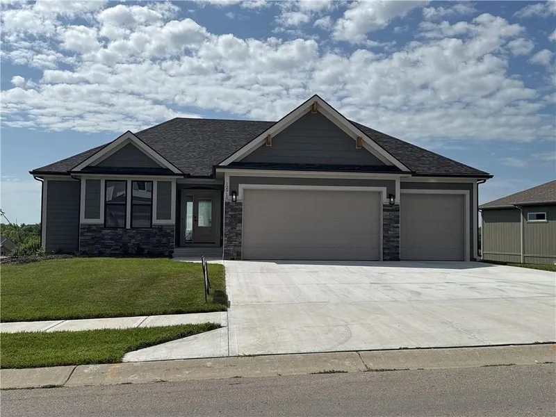 Dixon II, a 5 bedroom 3.1 bathroom home with an extra large granite island, light wood and white kitchen cabinets, brushed nickel hardware, corner stone fireplace, large cul-de-sac lot, composite deck with ceiling fan, extra large concrete pad in back, walkthrough master closet, freestanding tub, dual quartz vanity, wood floors in master, all walk-in closets, all granite or quartz vanities. Main level laundry. Walk in pantry with a butler station. Walkout basement with a wet bar featuring room for a full size fridge. One bedroom in the basement has an en-suite bathroom. HE furnace, blown in insulation and in ground sprinkler system. All square footage is approximate. This home is complete and move-in-ready!