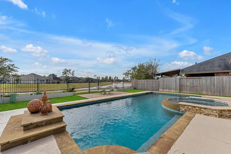 Breathtaking lakefront retreat in Tomball! This stunning home features 4 spacious bedrooms, 2.5 baths, and an open floor plan designed for comfort and entertaining. The kitchen is a chef's dream with ample counter space, modern appliances, and a breakfast bar that flows into the large living room, offering serene lake views. The primary suite is a true sanctuary, complete with a luxurious ensuite bath and tranquil views of the water. Step outside to your backyard paradise, featuring a sparkling pool and expansive patio perfect for hosting gatherings or enjoying quiet evenings by the lake. Additional highlights include generously sized secondary bedrooms, plenty of storage, and a 2-car garage. Nestled in a desirable neighborhood with access to top-rated Tomball ISD schools and convenient to shopping, dining, and major highways, this home offers the perfect blend of luxury, location, and lifestyle. Seller is leaving generator, refrigerator, stand up freezer, washer and dryer! Newer roof!